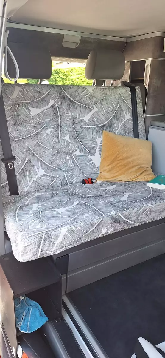 J'ajoute une touche personnelle à votre van avec des éléments décoratifs uniques, comme des rideaux sur mesure, des coussins originaux et des rangements design.