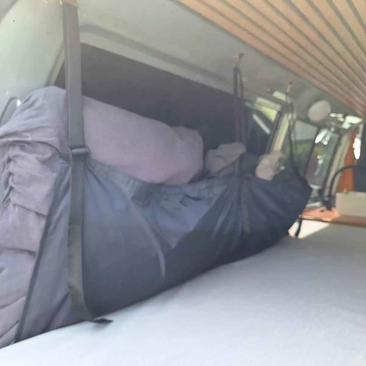 Concevoir des rangements astucieux pour optimiser l'espace dans votre van, en utilisant des tissus légers et robustes.